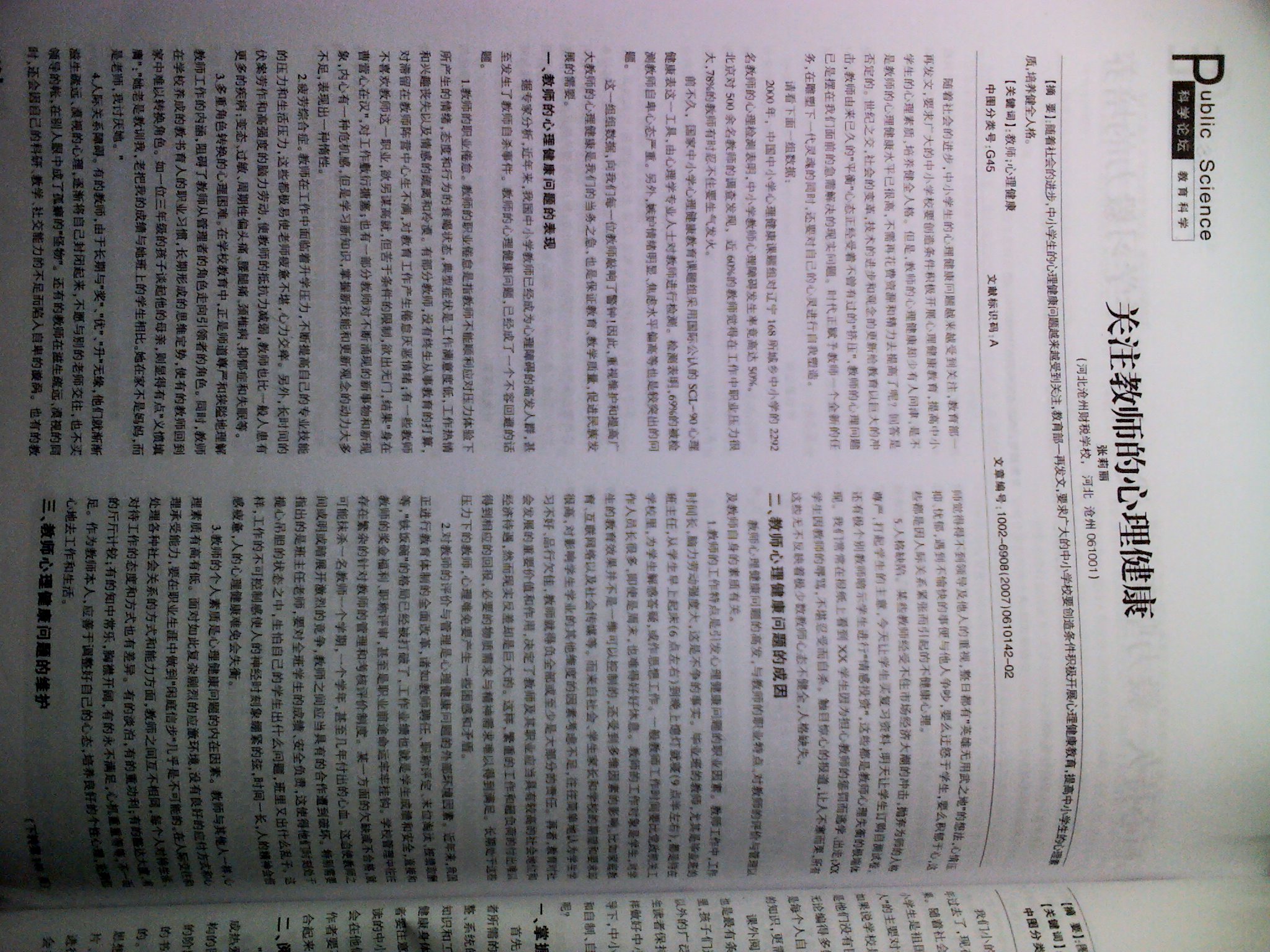 关注教师的心理健康