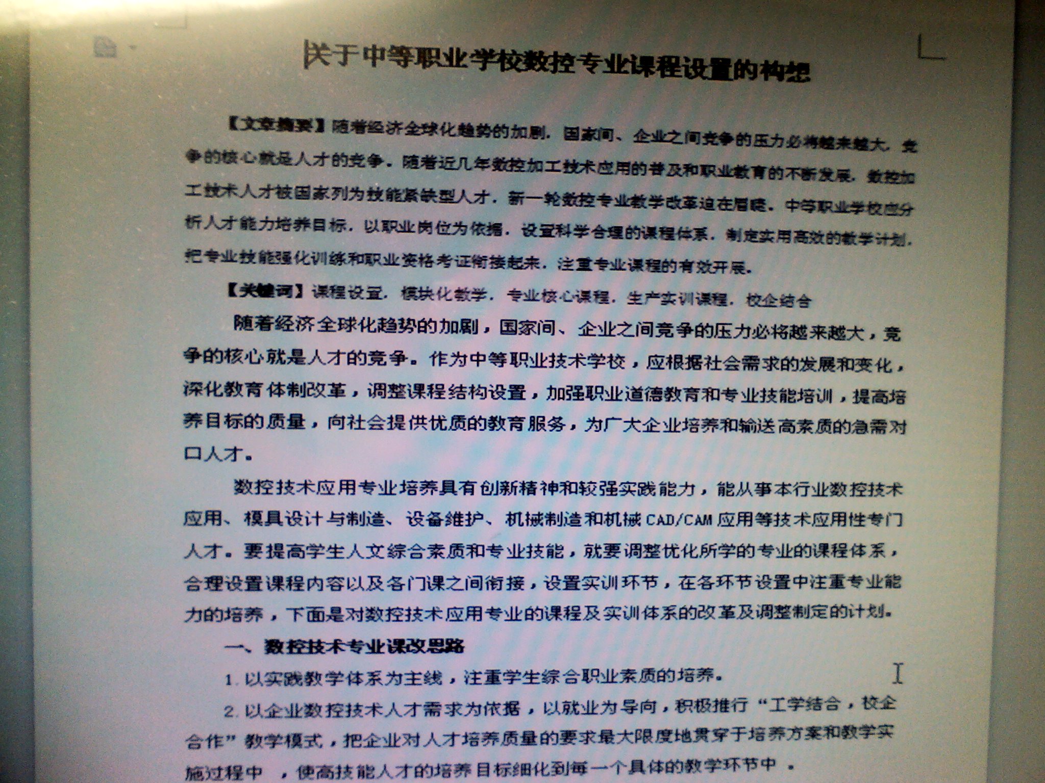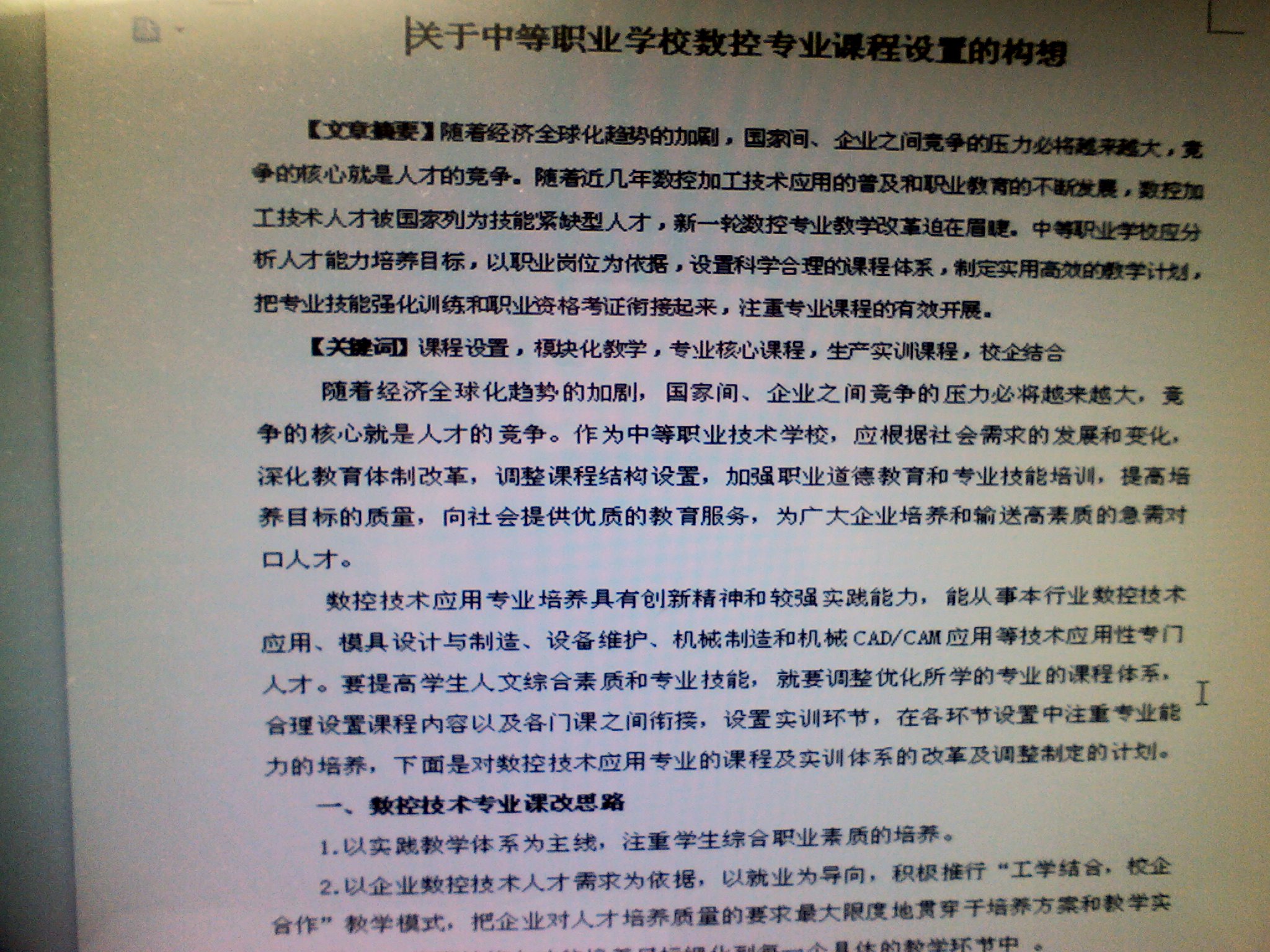 关于中等职业学校数控专业课程设置的构想
