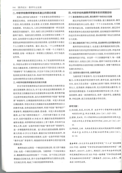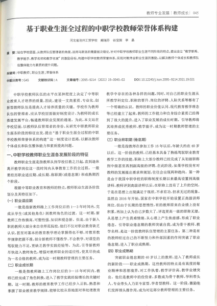 基于职业生涯全过程的中职学校教师荣誉体系构建